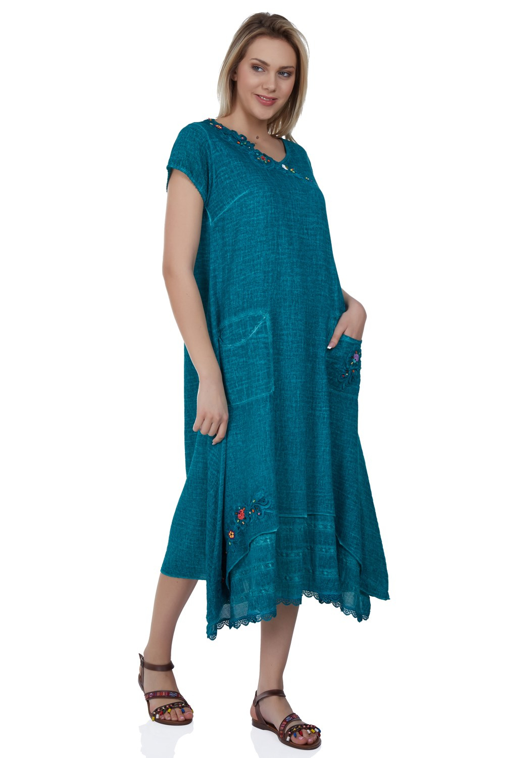 Kısa Kol Şile Bezi Ebru Midi Boy Elbise Nil Yeşili Nlysl (921.01)