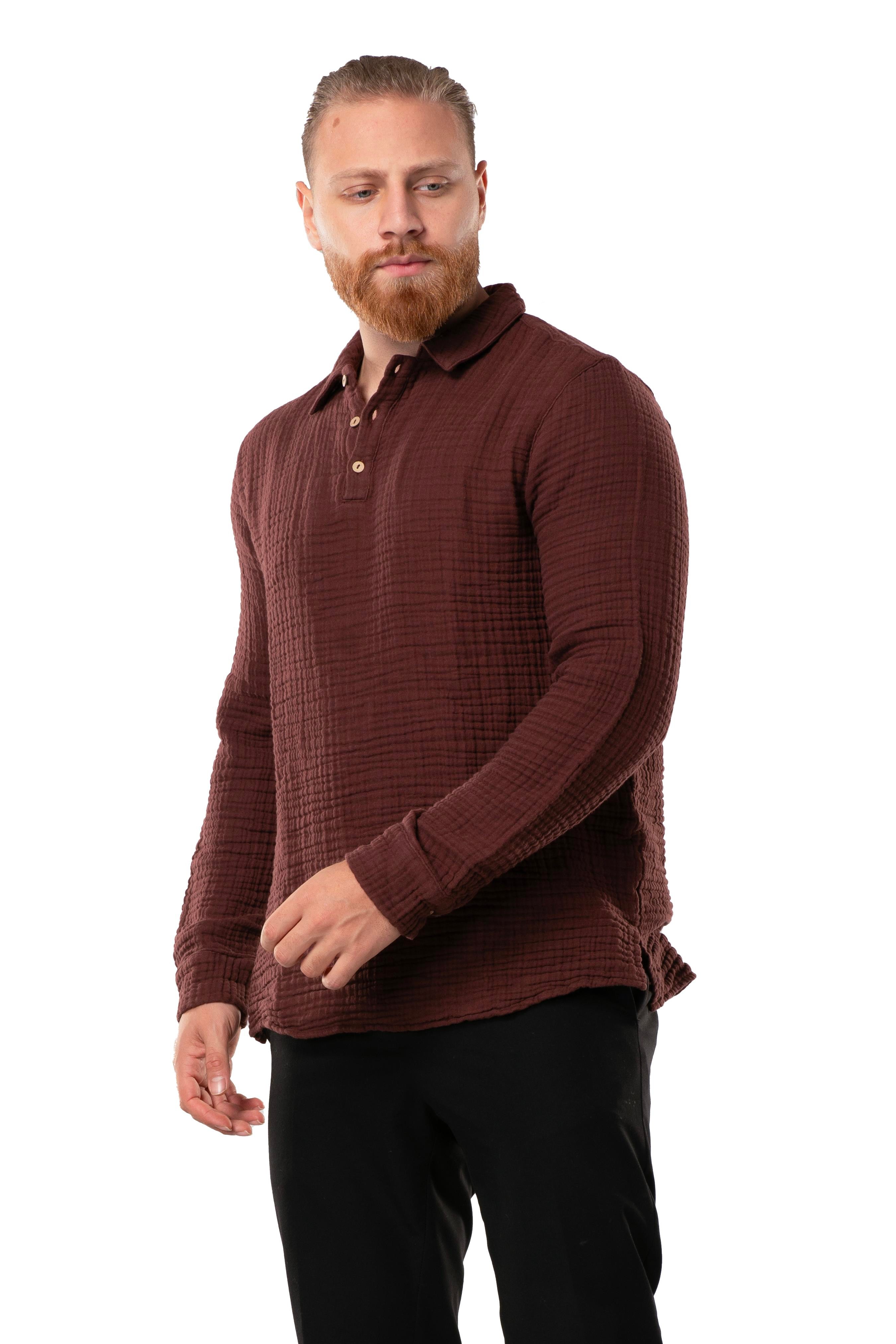 Long Sleeve Fall and Winter Muslin Sweatshirt Burgundy (582.05)