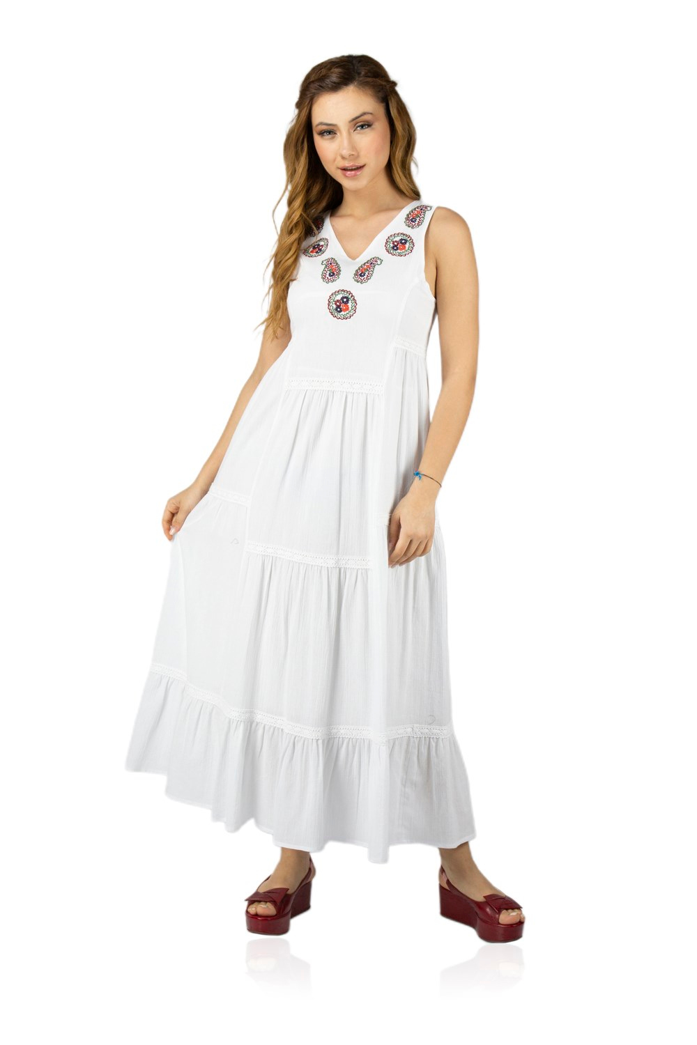 Sleeveless Şile Fabric Nefes Long Dress White (223.11)