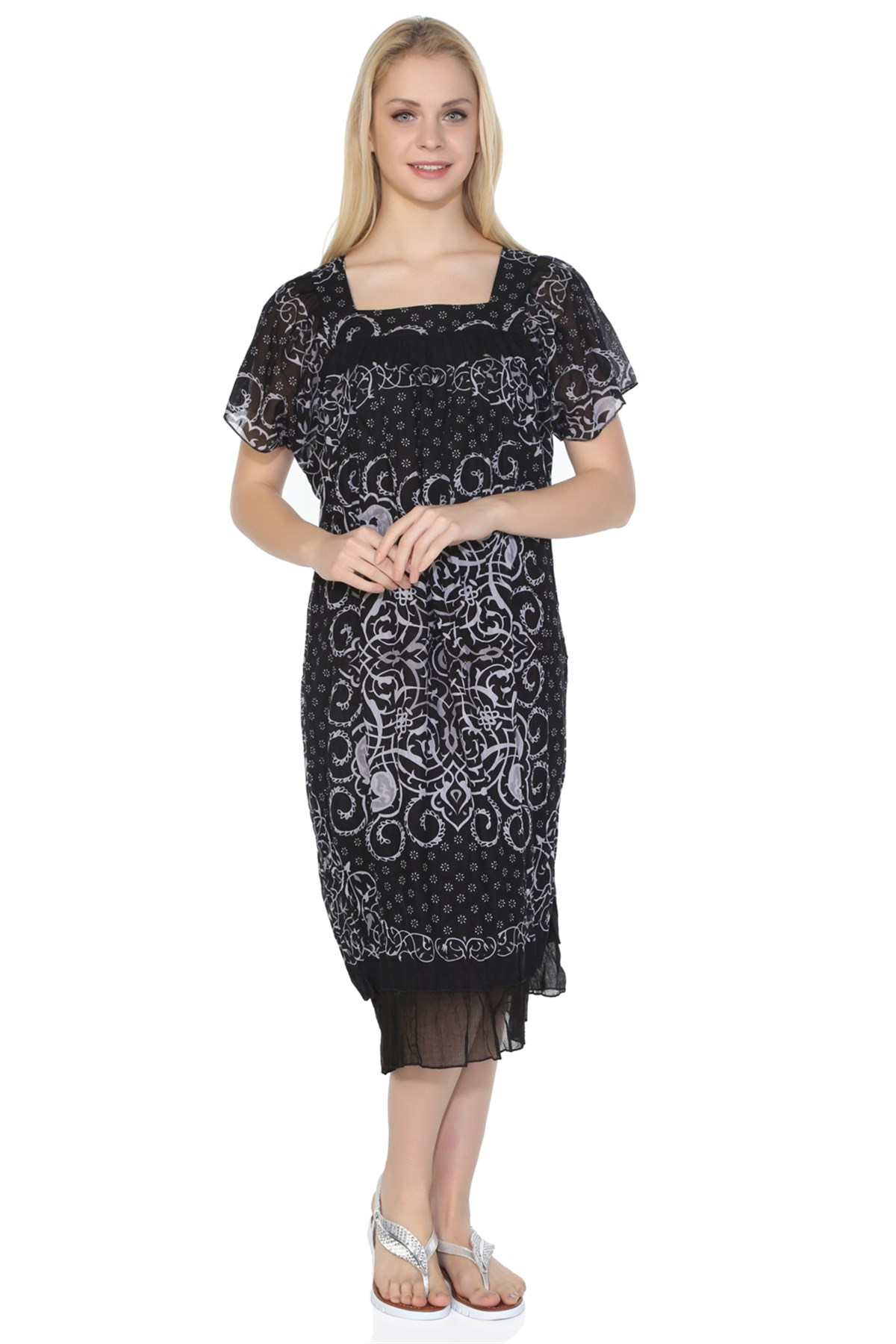 Short Sleeve Voile Mint Collar Irmak Dress Zengin Pattern Black (ELB.K.0049)