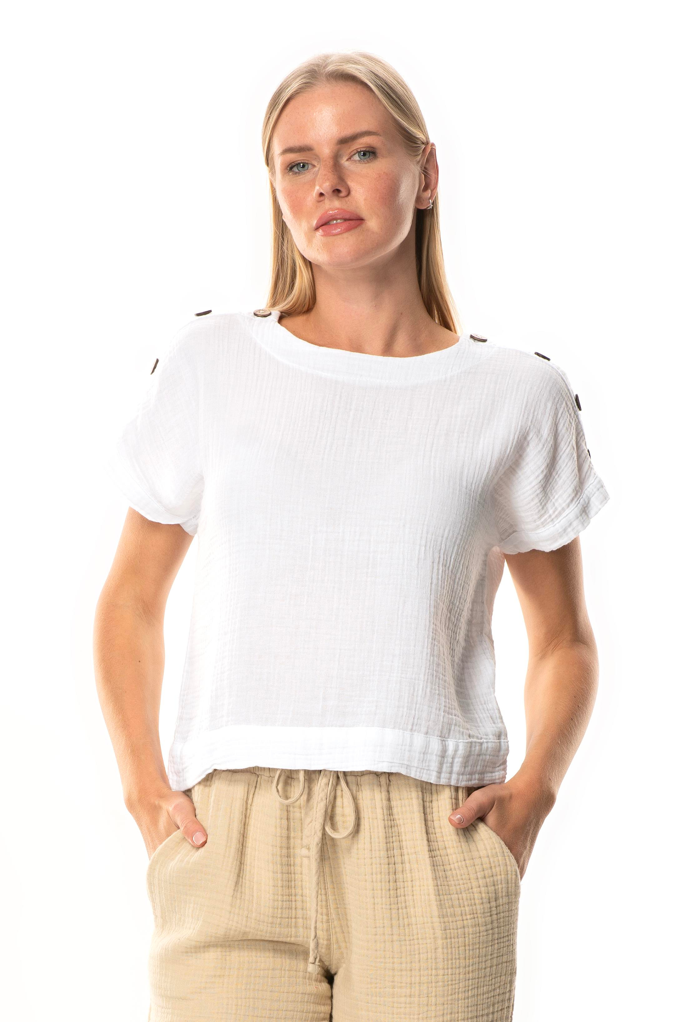 Kısa Kol Serap Bisiklet Yaka Müslin Yazlık Bluz Beyaz Byz