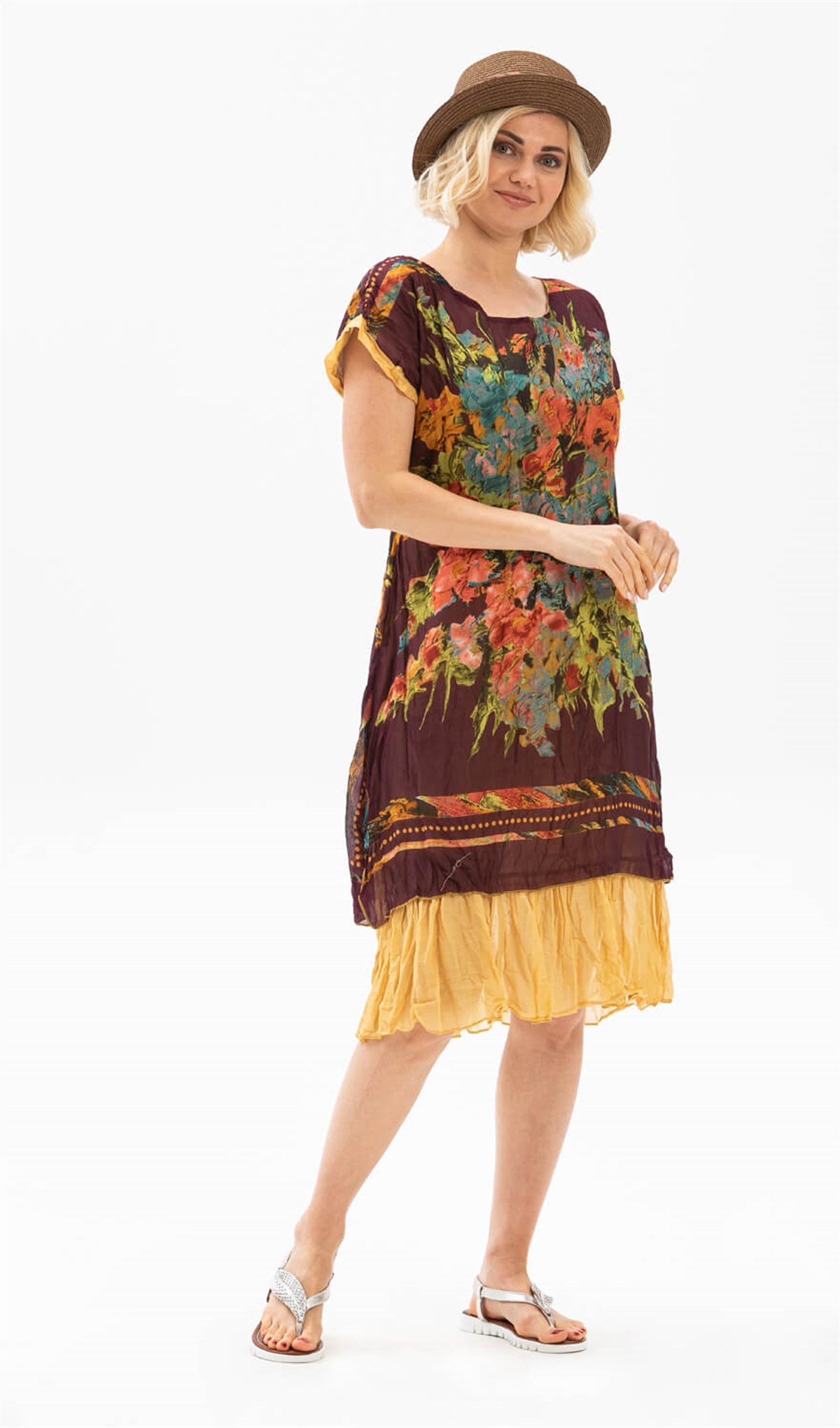 Kısa Kol Vual Defne Midi Boy Yazlık Otantik Elbise Koyu Bordo 6079 (621.02)