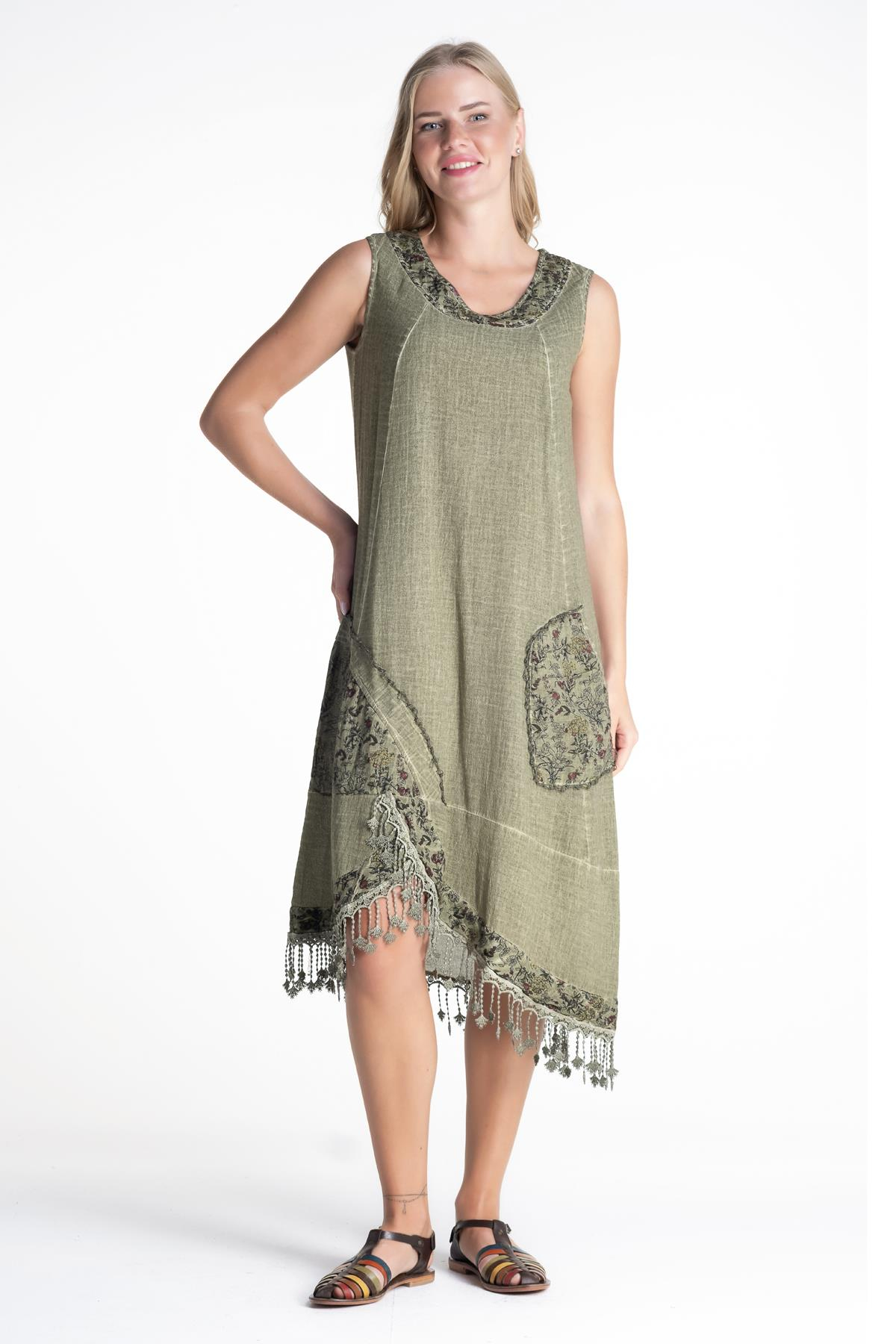Kolsuz Şile Bez Nur Kısa Elbise Haki Hk
