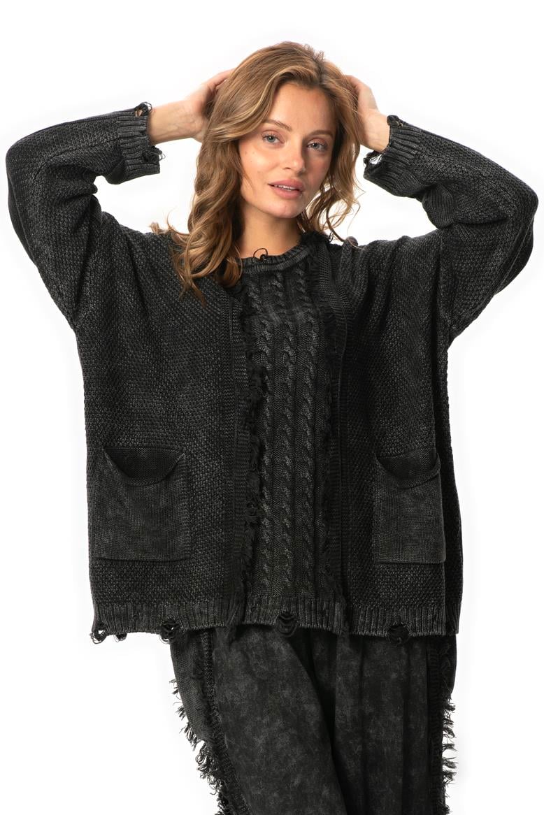 Uzun Kol Aylin Örgü Detaylı Bisiklet Yaka Sonbahar ve Kışlık Triko Bluz Siyah Syh (T36452-1)