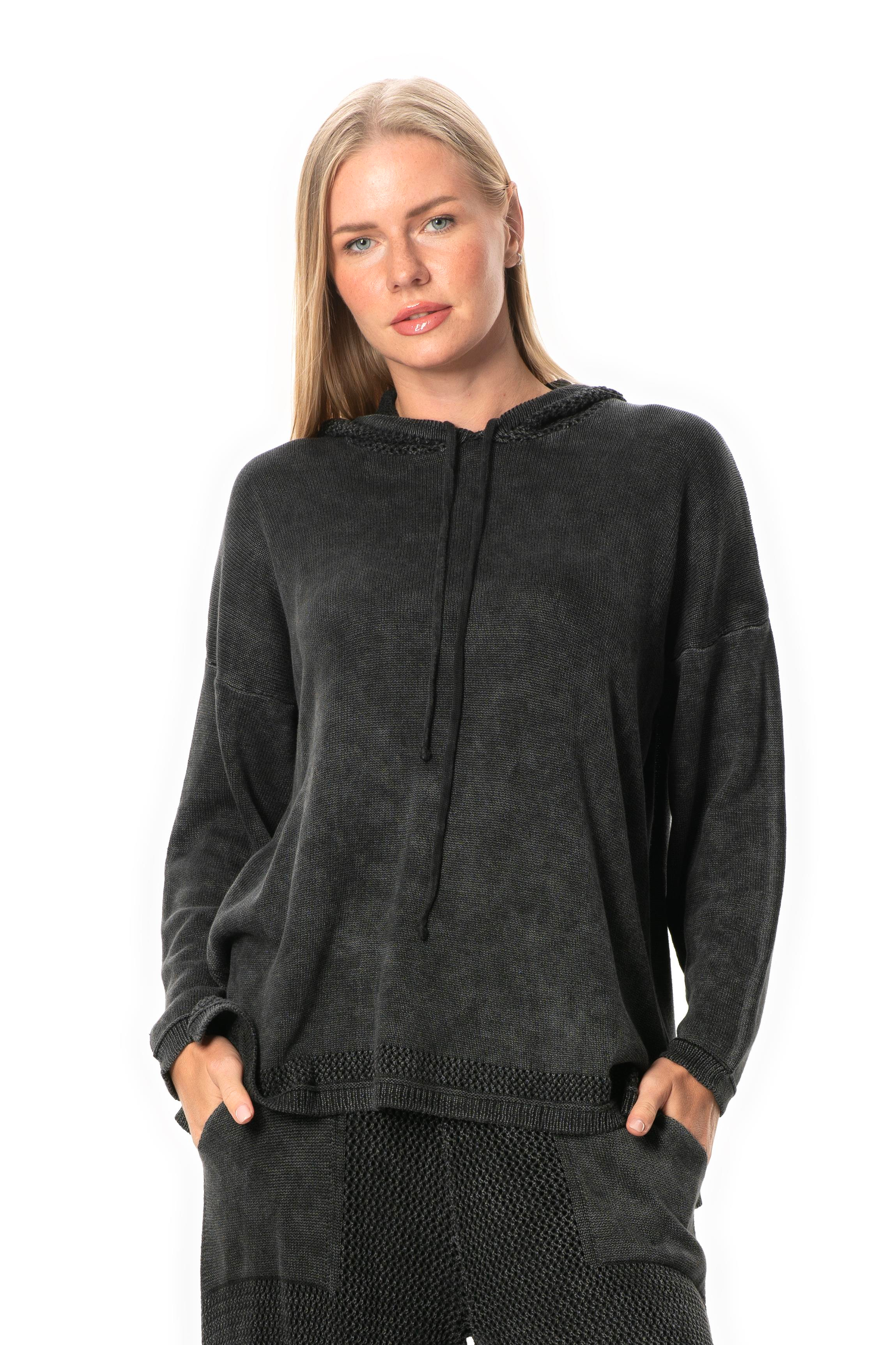 Uzun Kol Kapüşonlu Fileli Sonbahar ve Kışlık Triko Bluz Füme Fm (T34752-1)