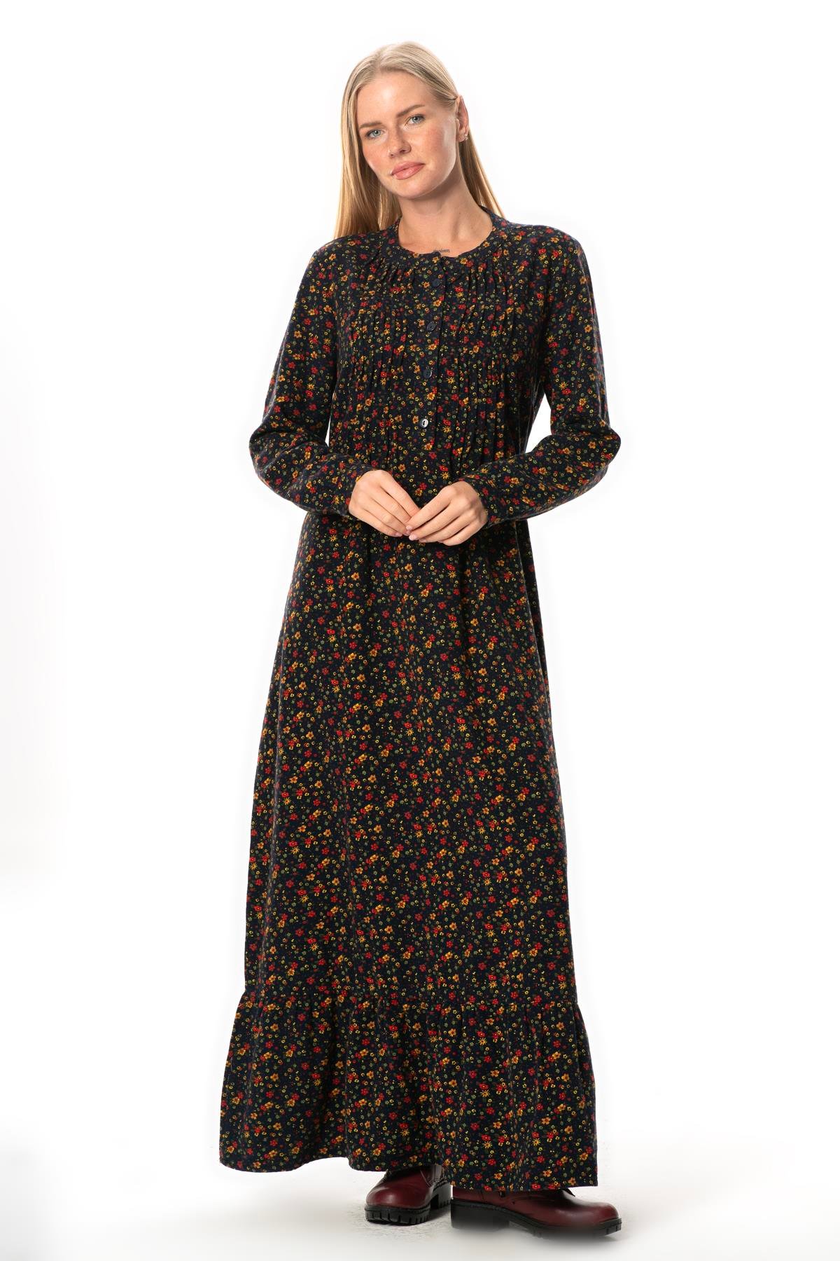 Uzun Kol Sümeyye Pazen Düğmeli Sonbahar ve Kışlık Uzun Elbise Lacivert Lcvt (822.84)